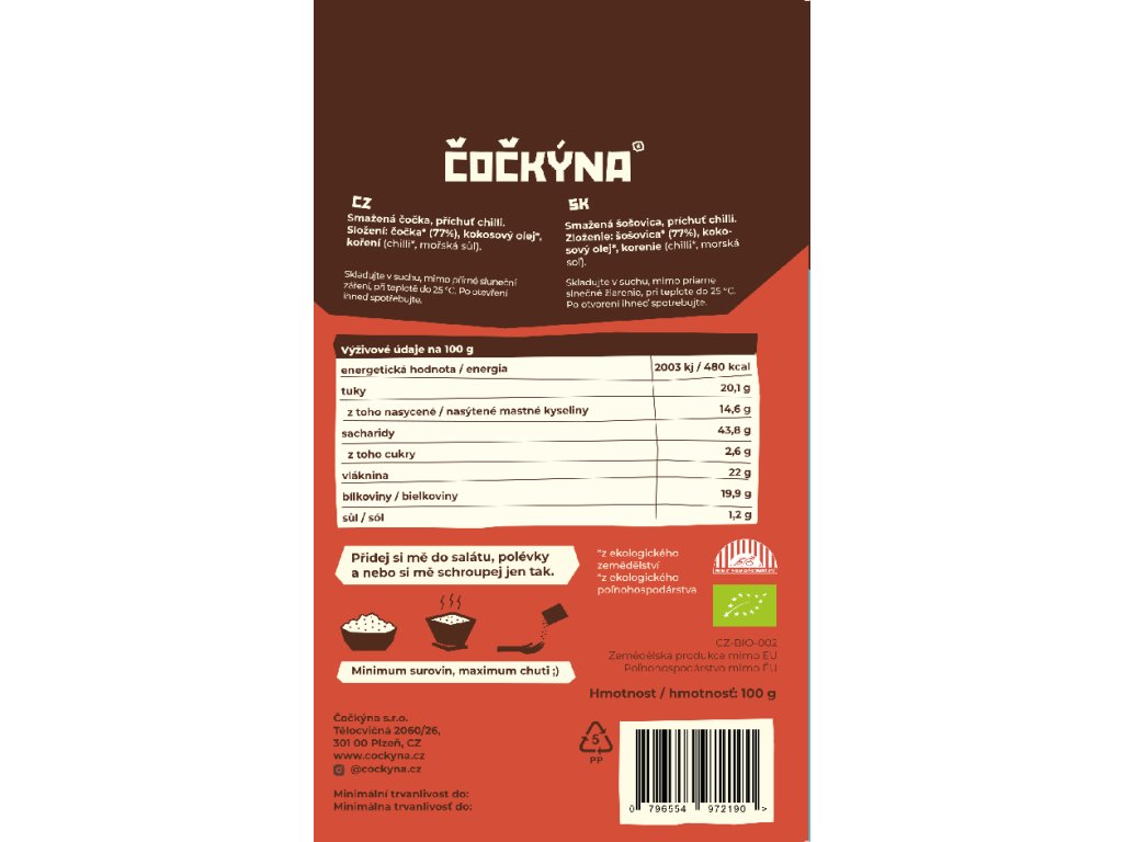 Čočkýna je tvůj ideální parťák na cesty. Vejde se ti do kapsy, snadno ji přihodíš do batohu i tašky. Ať už jdeš na odpolední procházku, dlouhou túru nebo objevuješ svět. Čočkýna je lehký, výživný snack, který máš vždy po ruce!